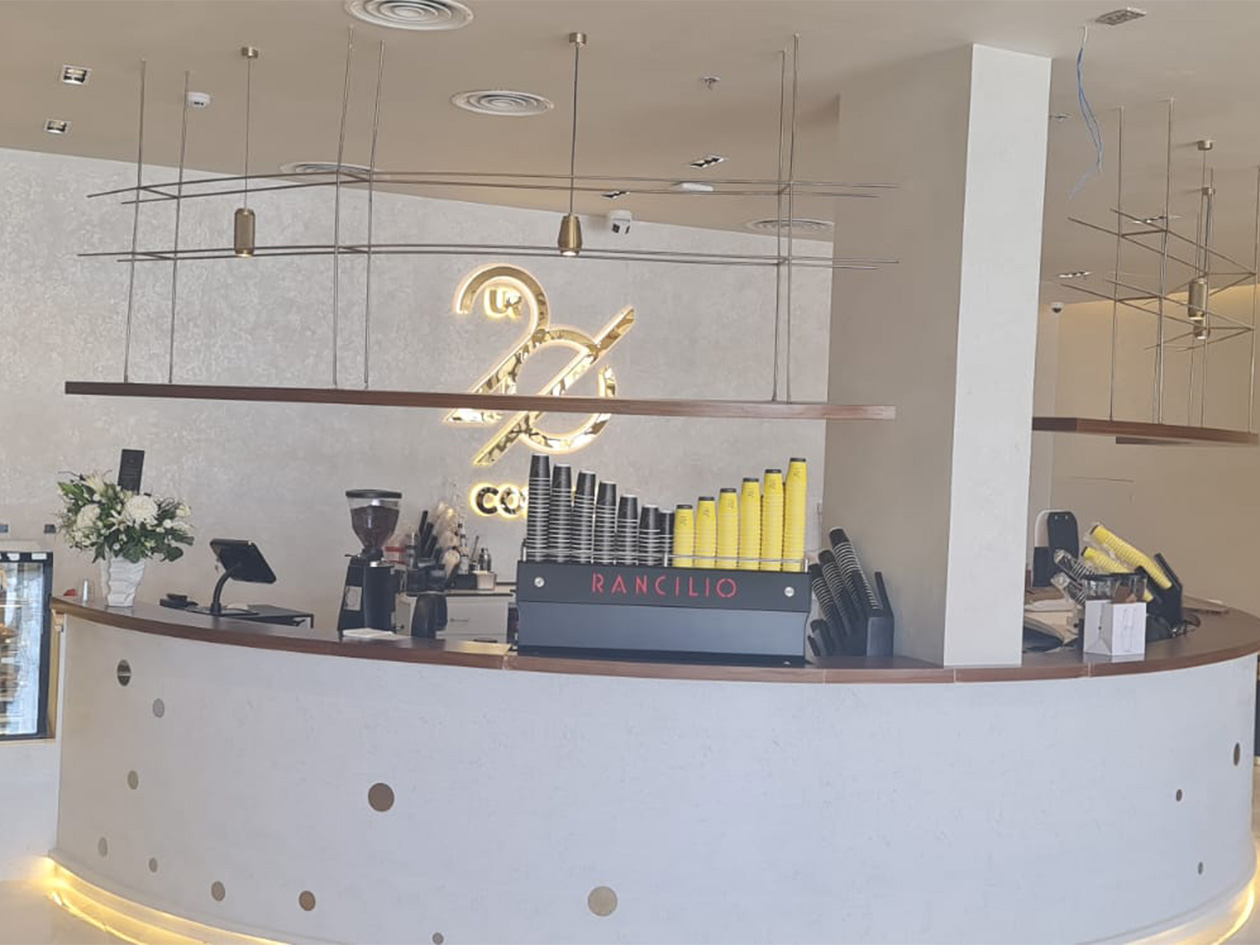 The project included the complete fit-out and design works for the café, comprising preparatory works, electrical and mechanical installations, final finishing works, as well as the supply and installation of café equipment and operational requirements. All works were carried out in accordance with the highest quality standards and in full compliance with occupational health and safety regulations at the site.